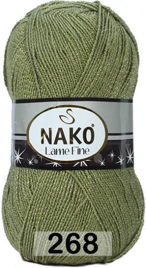 Пряжа Nako Lame Fine 00268 зеленый хаки с серебром