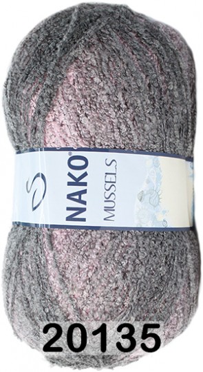Нако мусселс. Пряжа букле фантазийного крашения. Изделия из этой пряжи получаются с переходами цвета от светлого к темному тону. Фактура букле добавит изделию легкость. Спицы и крючок 5.5-6.